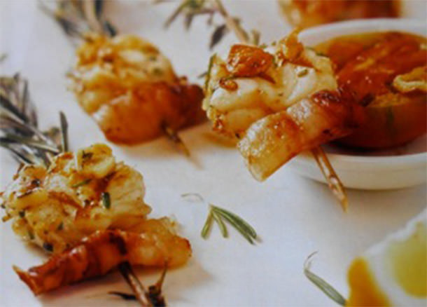 Note: to serve as a main dish add more fish on the skewer and place the bacon between the fish pieces and add a lemon wedge on the top of each skewer.